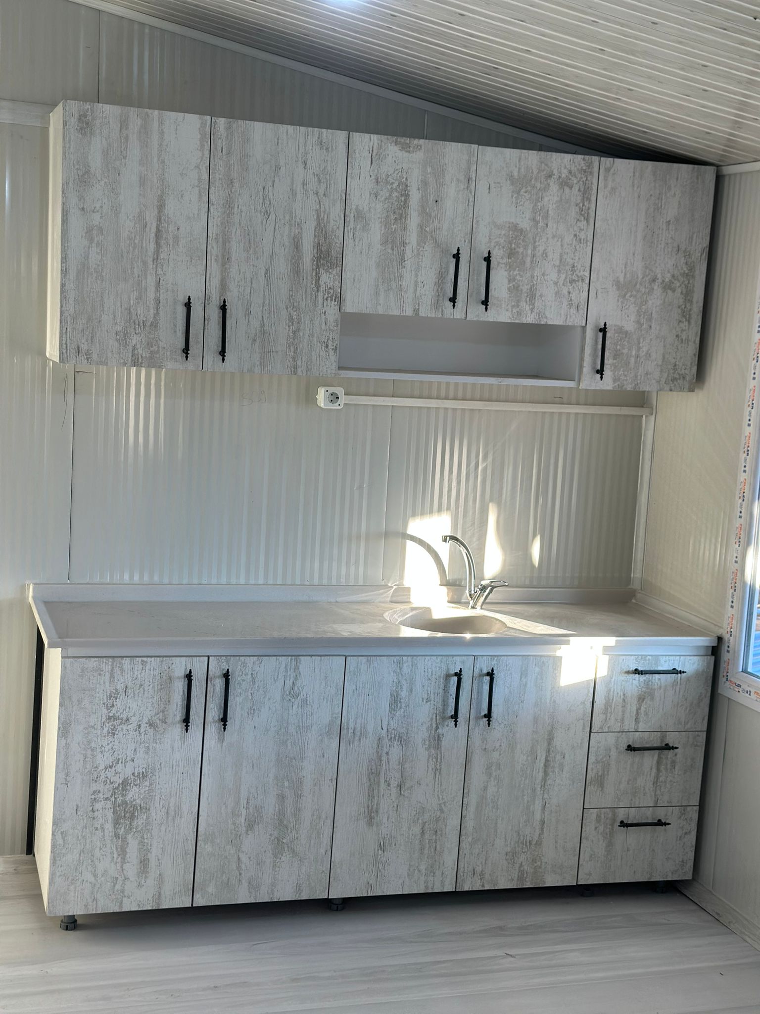 Prefabrik ev mutfak dolabı, hem estetik hem de fonksiyonel kullanım sunacak şekilde tasarlanmıştır. Alt ve üst dolap modülleri sayesinde mutfak alanı verimli şekilde değerlendirilirken, dayanıklı malzeme yapısı uzun ömürlü kullanım sağlar. Geniş tezgâh alanı günlük mutfak ihtiyaçlarını rahatça karşılar. Modern tasarımı sayesinde prefabrik evler, ofisler veya sosyal alan mutfaklarında şık ve düzenli bir görünüm oluşturur. Ölçü, renk ve iç düzen kullanıcı talebine göre özelleştirilebilir.